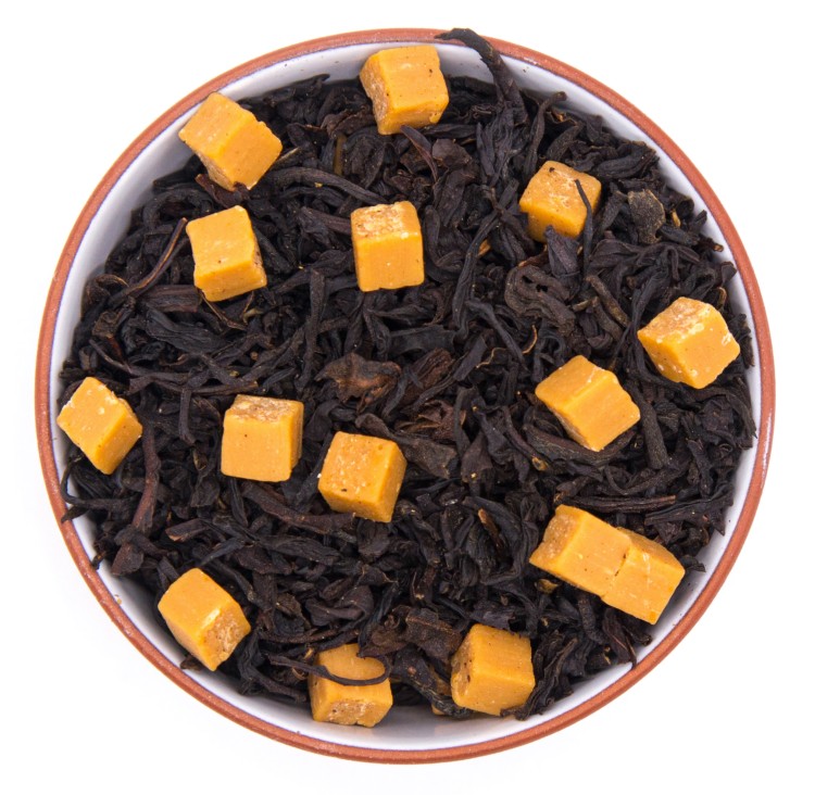 Индийский черный чай с кусочками карамели в составе и ненавязчивой и согревающей ноткой английской карамели во вкусе. Имеет сладкий, тягучий и глубокий вкус.