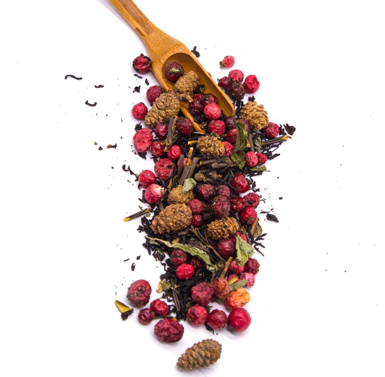 Наши мастера-технологи бережно отбирают лучшие составляющие, чтобы каждый чашечка чая была на высшем уровне. В состав чая входят: чай черный индийского происхождения, иван-чай, смородина красная, клюква ягоды, мята. Однако, настоящее «Богатство леса» придают ноты хвойного леса, которые делают наш чай действительно необыкновенным. Шишки сосны придают напитку легкую лесную горчинку, которая подчеркивает привкус ароматических ягод.
