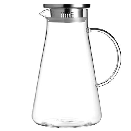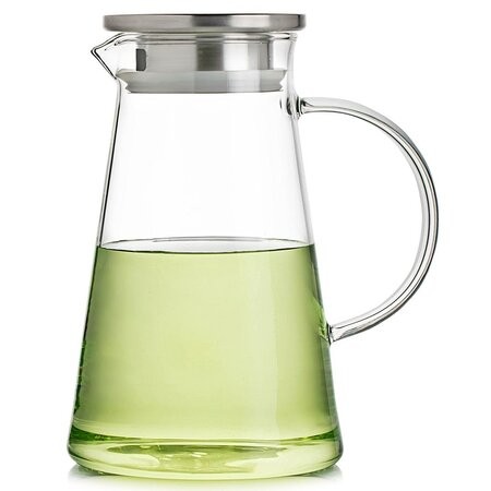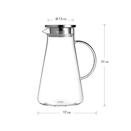 Большой прозрачный стеклянный кувшин из термостойкого стекла "Лимонад" большого объема 1400 мл прост и удобен в использовании.