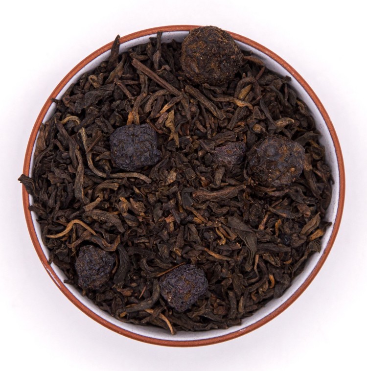 Китайский постферментированный пуэр ШУ 100%, ягоды черники, ароматическая добавка