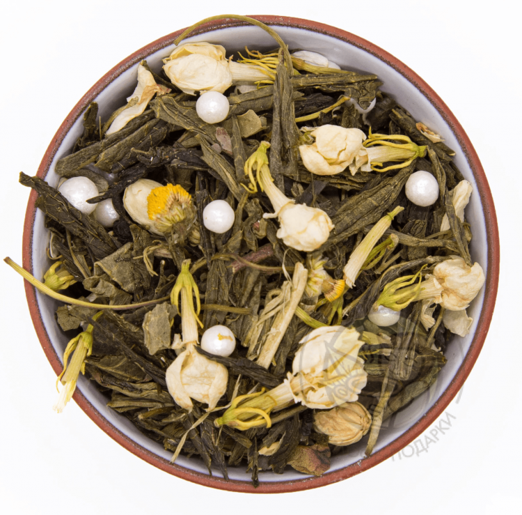 Сенча, бутоны жасмина, цветы ромашки, посыпки жемчуг белый, ароматизатор